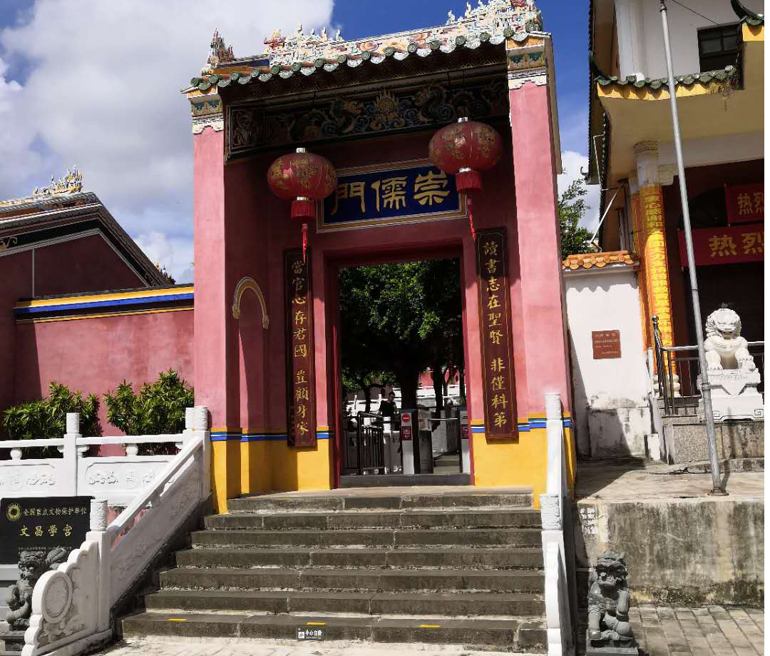 文昌孔廟位于文昌市東風路77號。史建于北宋慶歷年間,明洪武八年(1375年)遷于現(xiàn)址,建筑面積3300平方米。它是海南省保存得最完整的古建筑群,也是我國南方最具特色的古文化游游點之一.被譽為“海南第一廟”,屬國家級重點文物保護單位。為中國惟一一座不朝南、不開大門的孔廟。