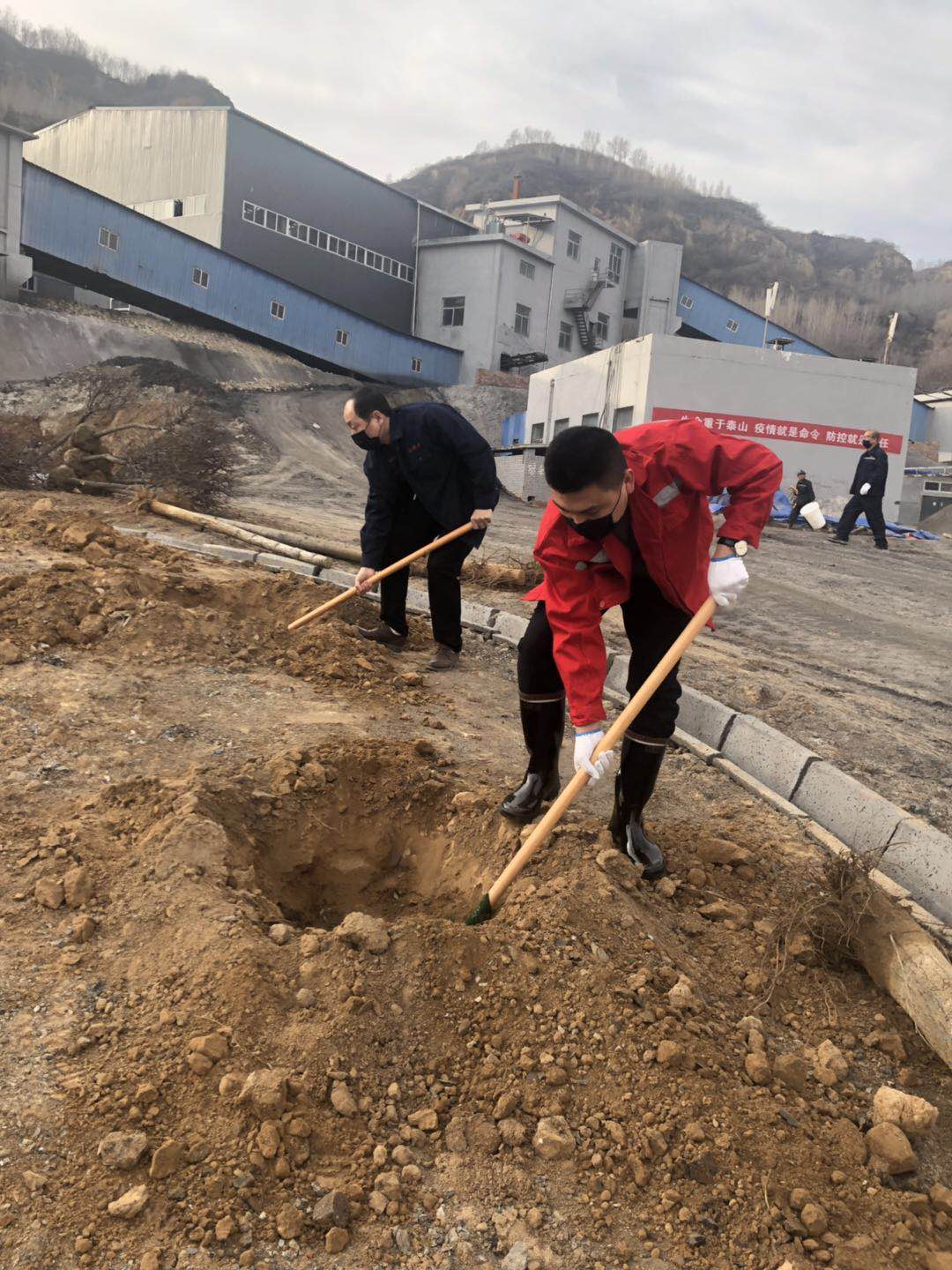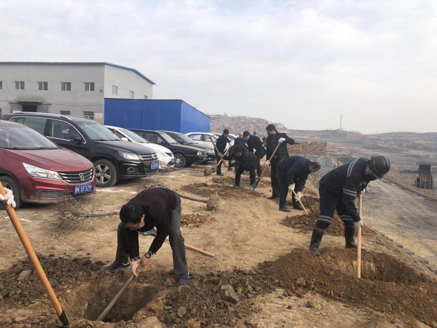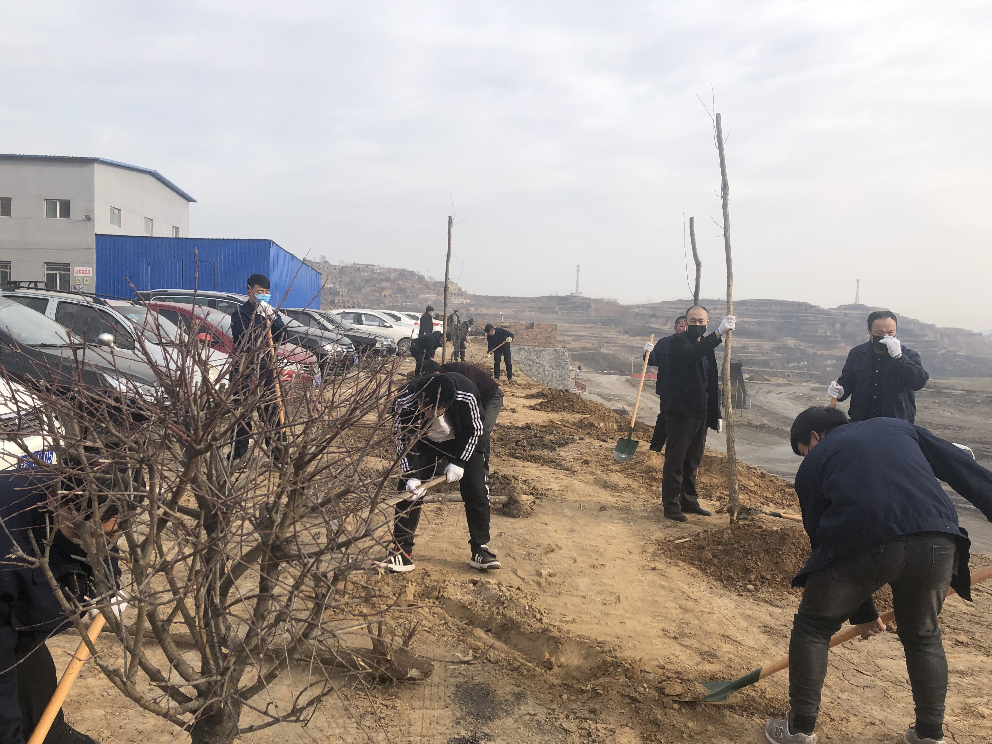 在3月12日植樹節(jié)當(dāng)天富源煤業(yè)準(zhǔn)備種植共計(jì)252棵樹木(152棵國槐樹、100棵華北衛(wèi)矛球)于礦區(qū)主干道和行政辦公樓前,早上8點(diǎn)10分富源煤業(yè)張衛(wèi)國礦長帶領(lǐng)參加今年植樹活動的員工共50余人,集中領(lǐng)取鐵鍬、十字鎬(洋鎬)、手套、樹苗等物品,為礦區(qū)建設(shè)添加一份綠色,